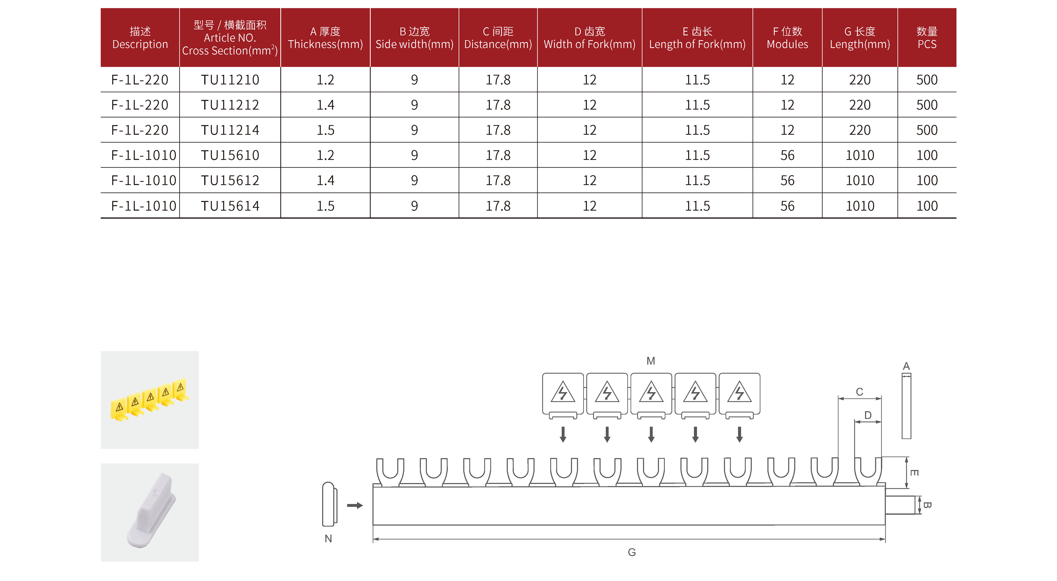 U 型, 1-P/63A TU 汇流排(M6)