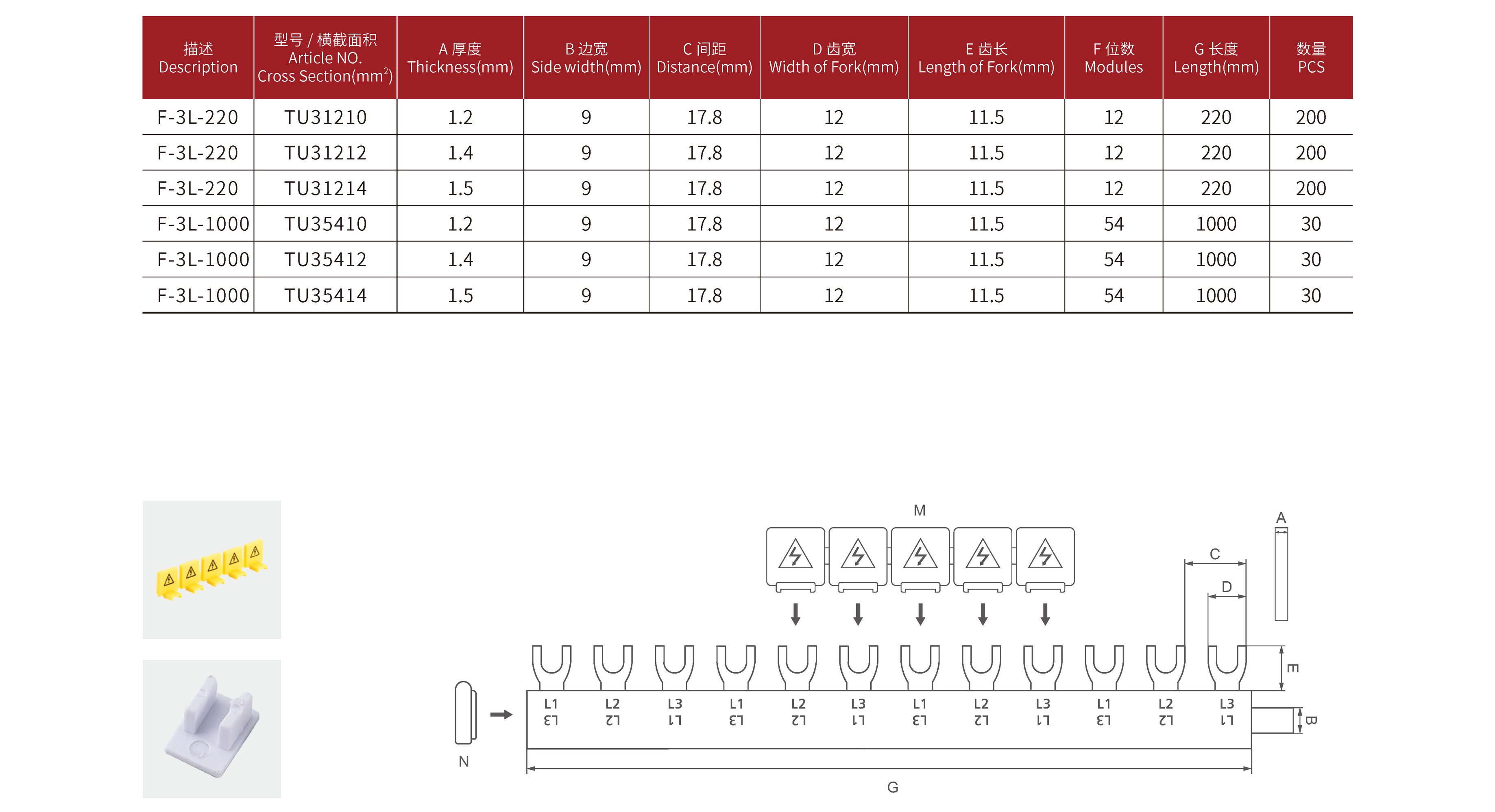 U 型, 3-P/63A TU 汇流排(M6)